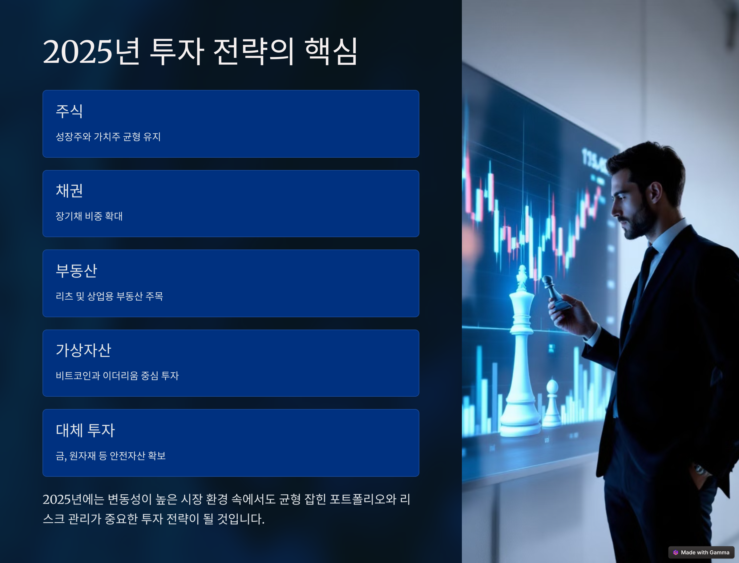 2025년에도 다양한 자산군에 분산 투자하는 것이 중요합니다.